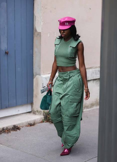 - Pantalonii Cargo din satin sau mătase: Uită de bumbacul rigid de camuflaj. Varianta „luxury” a pantalonilor cargo oferă confortul de care ai nevoie, dar și o textură fluidă care curge elegant pe picior. Se potrivesc de minune cu o pereche de balerini cu vârf ascuțit sau cu sandale minimaliste.